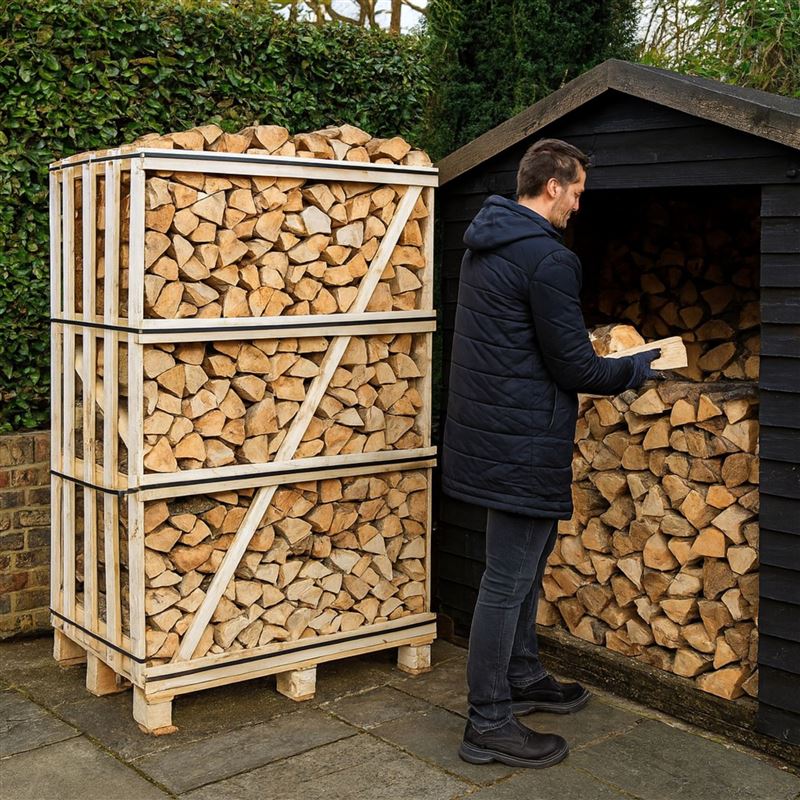 UK Firewood Logs offers premium kiln dried Oak firewood logs in a large crate, ensuring you have a plentiful supply throughout the year. The spacious crate (0.85 x 1.13 x 2.0 m) provides ample storage capacity and ease of transport.